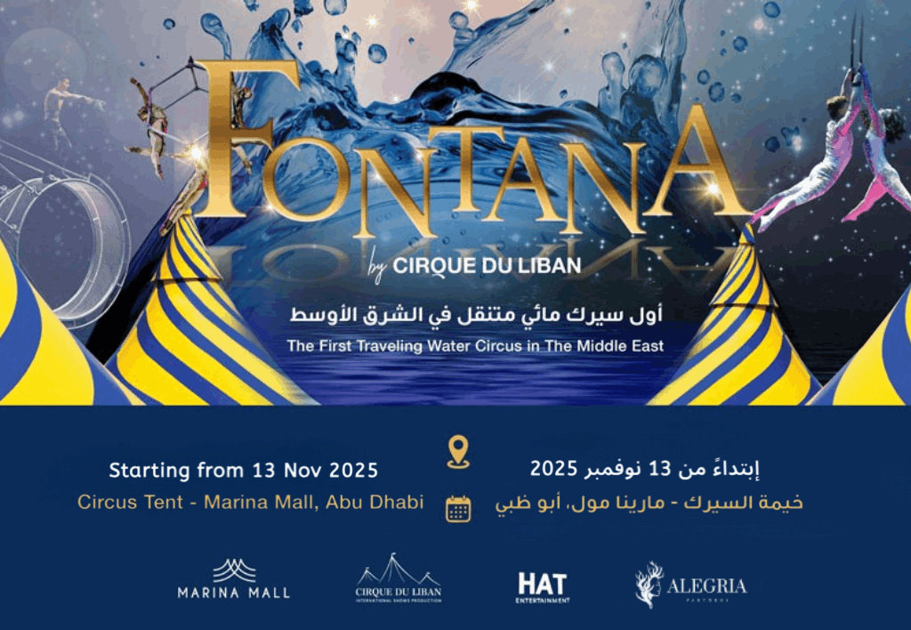 Renowned as the most ambitious aquatic show in the region, the Fontana Show will make its grand entrance for the 2025 season at the Marina Mall Circus Tent, powered by Hat Entertainment. This first-of-its-kind travelling water circus in the Middle East promises to redefine live entertainment through its blend of artistic circus performances, aerialists, acrobatics, and spectacular special effects.